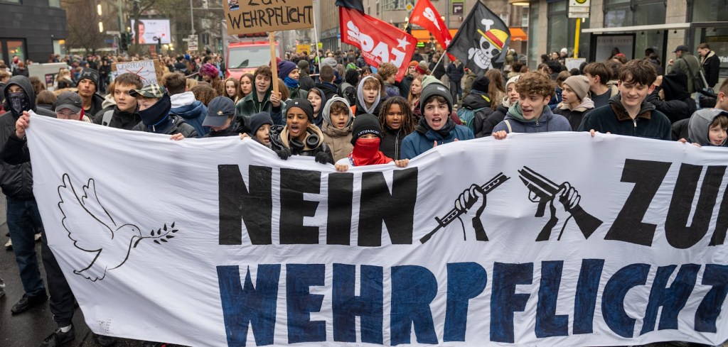 Under mottoet “Skolestrejke mod værnepligt” samlede ungdoms- og skoleorganisationer tusinder til protester over hele Tyskland.