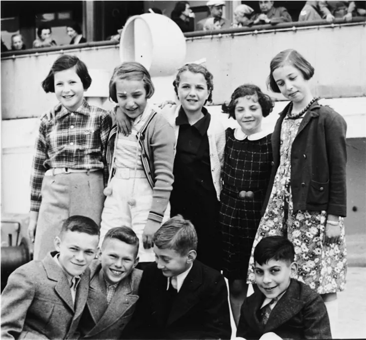 Billedet viser børn ombord på St. Louis. På forreste række, til venstre, ses brødrene Herbert og Walter Karliner der rejste sammen med deres forældre og to søstre. Da skibet var vendt tilbage til Europa, lykkedes det familien Karliner at søge tilflugt i Frankrig. Herbert og Walter blev skjult på forskellige børnehjem og overlevede krigen. Deres forældre og søstre blev anholdt og deporteret til Auschwitz, hvor de blev dræbt. (US Holocaust Memorial Museum)
